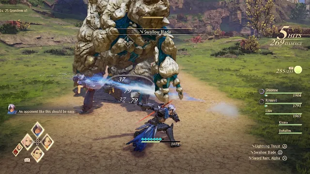 Uma novidade notável é o Ataque de Impulso, que é uma técnica exclusiva de cada personagem, com efeitos distintos. Kisara, por exemplo, usa seu escudo para bloquear investidas dos inimigos; Law destrói defesas com um soco concentrado; já Rinwell é capaz de interromper o carregamento de feitiços de oponentes. Para ter sucesso nos combates, é de extrema importância ficar atento aos inimigos e utilizar corretamente essas técnicas para deixá-los vulneráveis.