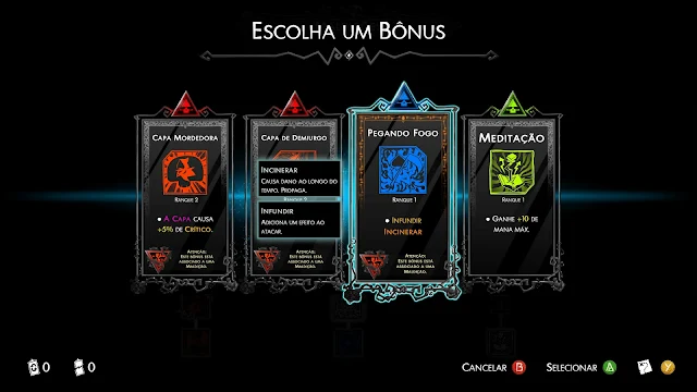 A diversidade de opções faz com que cada partida seja bem única. Tentei de tudo um pouco, como focar em combos misturando armas, destruir inimigos de longe com feitiços ou então usar efeitos das Maldições para desferir ataques críticos poderosos ou infligir inúmeros estados negativos. Para mim, parte da diversão foi testar as possibilidades e criar sinergias e combos interessantes.